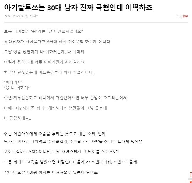 요즘 성인이 쓰면 이상하다고 논란되는 단어