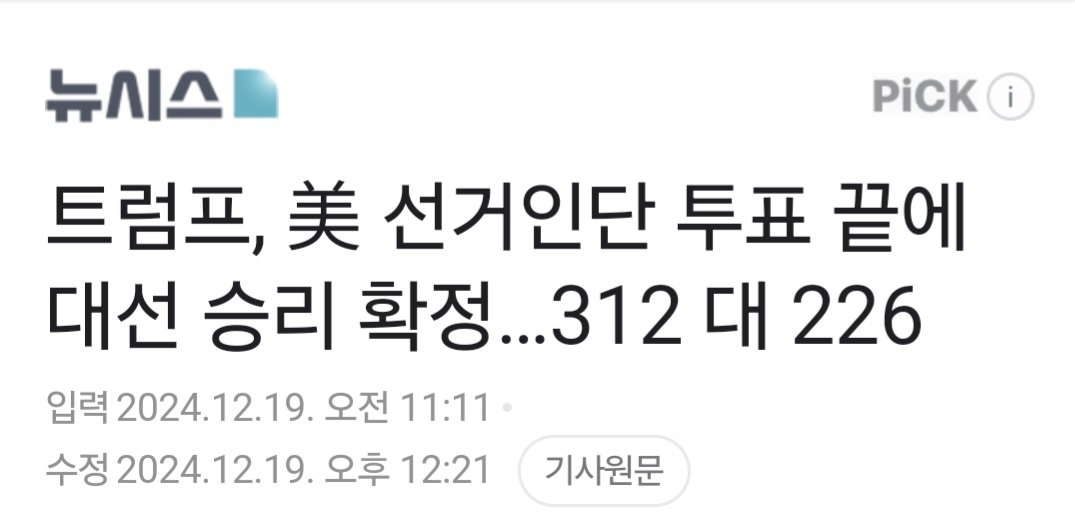 미국 대선... 선거인단 투표가 어제 확정됨