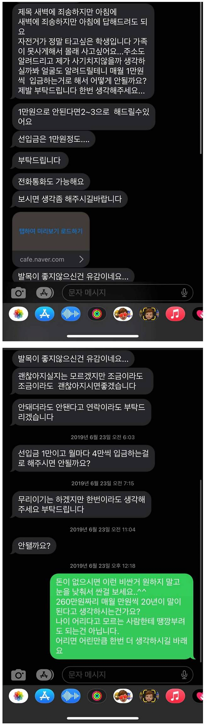 20년 할부로 자전거를 사고 싶다는 구매자
