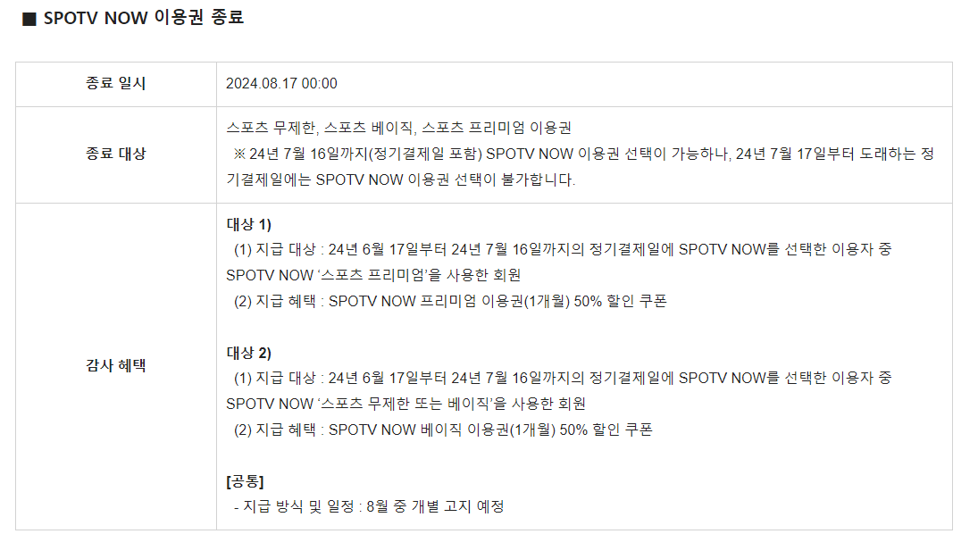 네이버 멤버쉽 SPOTV NOW 이용권 종료