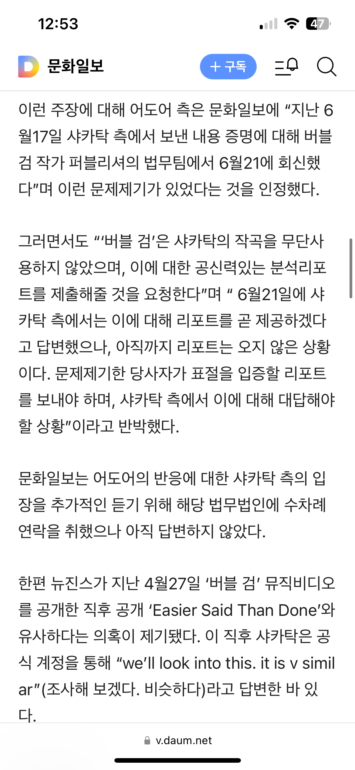 문화일보는 어도어의 반응에 대한 샤카탁 측의 입장을 추가적인 듣기 위해 해당 법무법인에 수차례 연락을 취했으나 아직 답변하지 않았다.