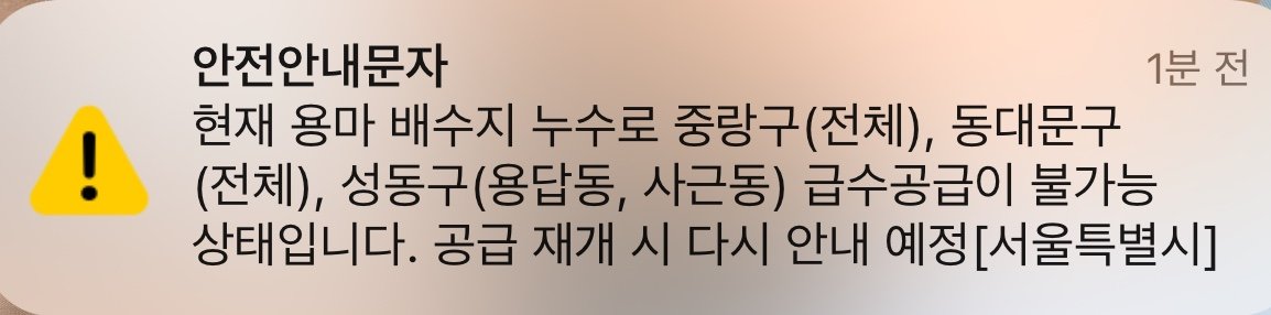 배수지 누수로 중랑구,동대문구,성동구 급수공급 불가