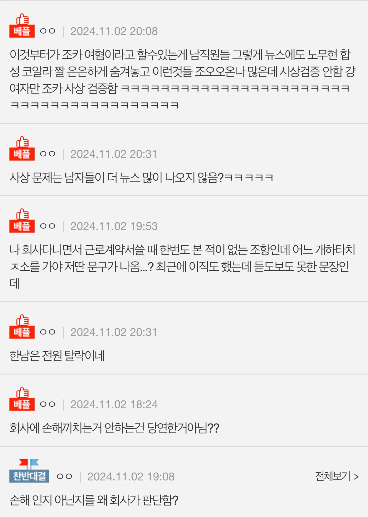페미사상으로 인한 손해인지 아닌지를 왜 회사가 판단함??