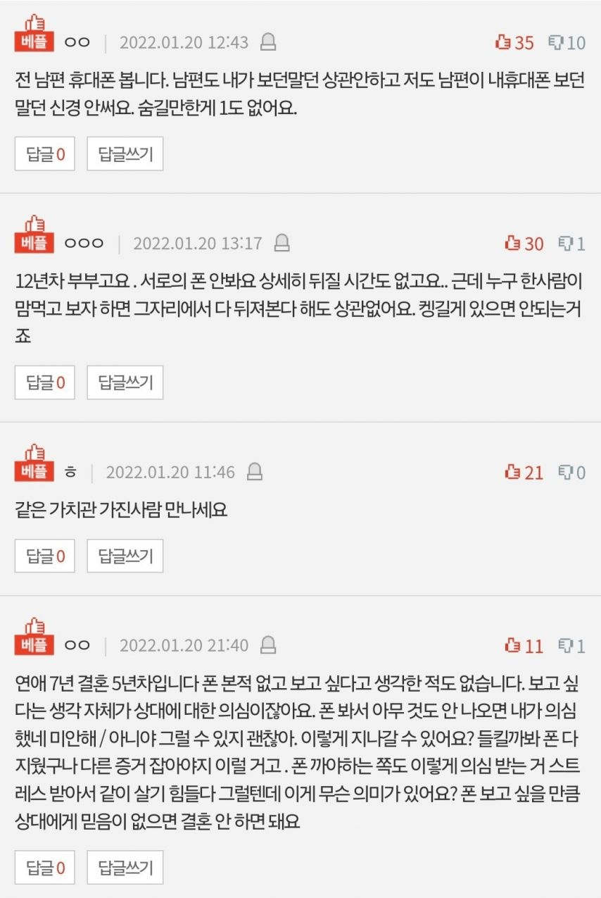 부부 사이 핸드폰 오픈 문제