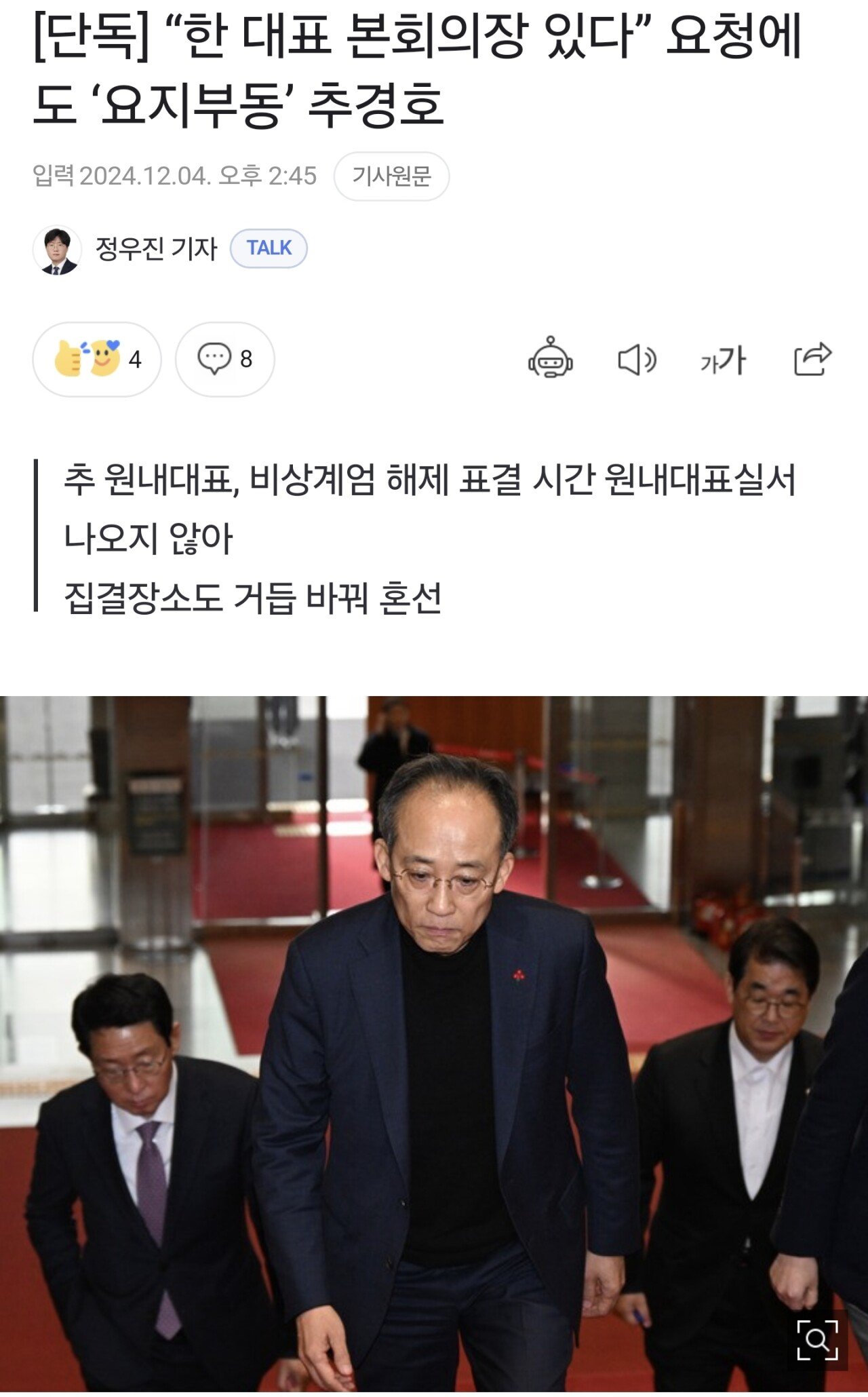 추경호, 표결 참석 안하고 본회의장에 참석한 여당의원 몇명인지 파악하라는 지시