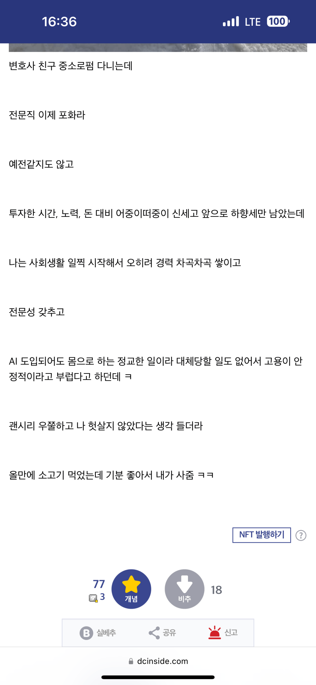 어제 변호사 동창이랑 술마셨는데 내가 부럽다더라