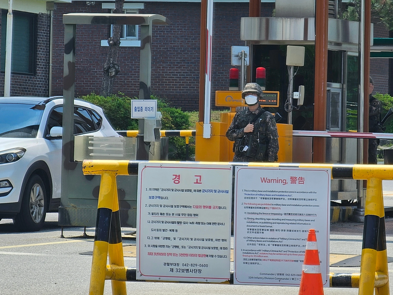 지난 21일 오전 수류탄 투척훈련 중 폭발사고가 난 육군 32사단 위병소 모습. /뉴스1