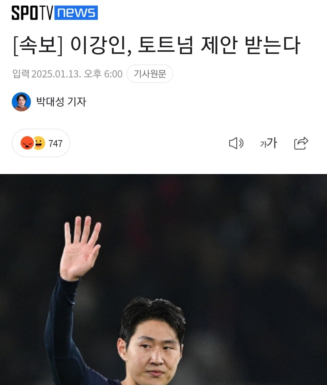 네이버 토트넘 이강인 관심 기사 화나요 비율