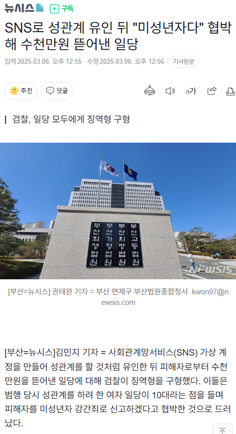 SNS로 성관계 유인 뒤 "미성년자다" 협박해 수천만원 뜯어낸 일당