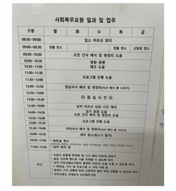 첫 출근한 공익이 받은 일과표.