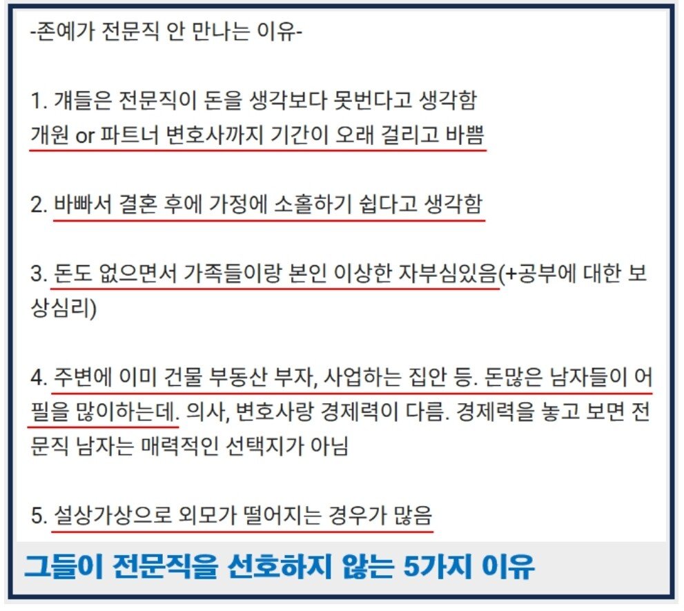 존예녀들이 의사 변호사 등 전문직 안만나는 이유.txt
