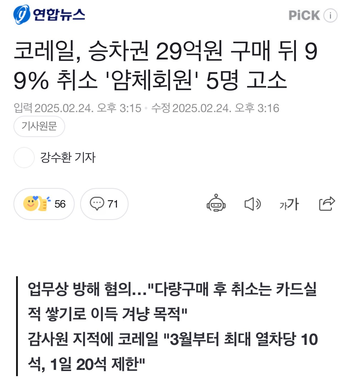 코레일, 승차권 29억원 구매 뒤 99% 취소 '얌체회원' 5명 고소