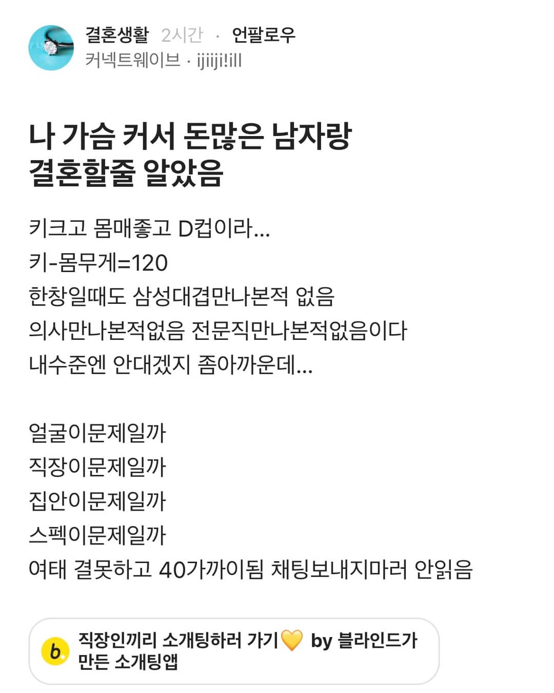 나 가슴커서 돈많은 남자랑 결혼할 줄 알았는데...
