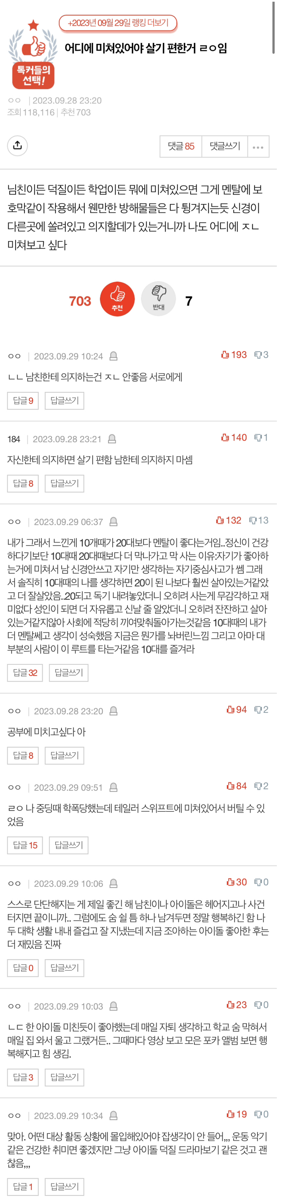 어디에 미쳐있어야 살기 편한거 ㄹㅇ임
