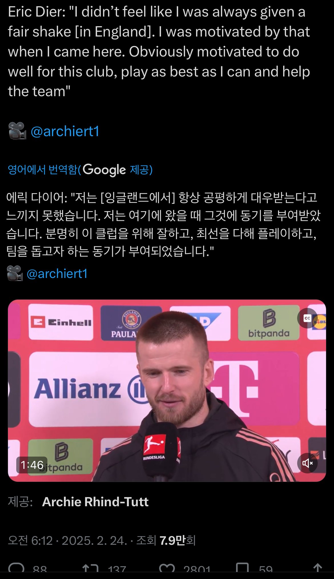 다이어) 나는 항상 잉글랜드에서 공평하게 대우받았다고 느낀 적이 없다
