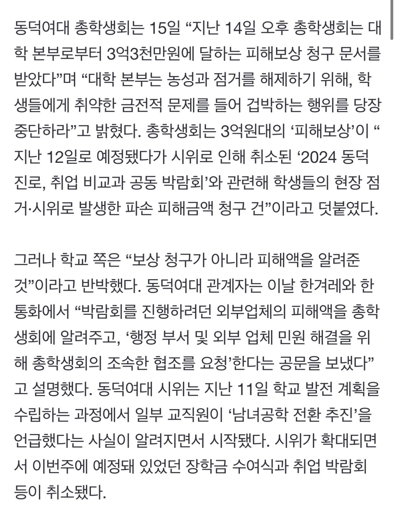 동덕여대 피해보상청구도 선동이었음.news