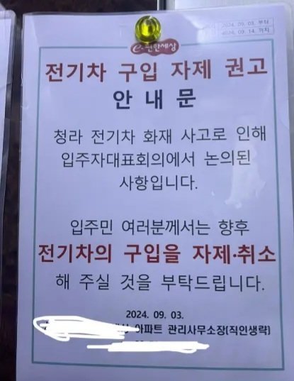 관리실에서 붙인 전기차 구입 자제 권고문 ㄷㄷㄷㄷ