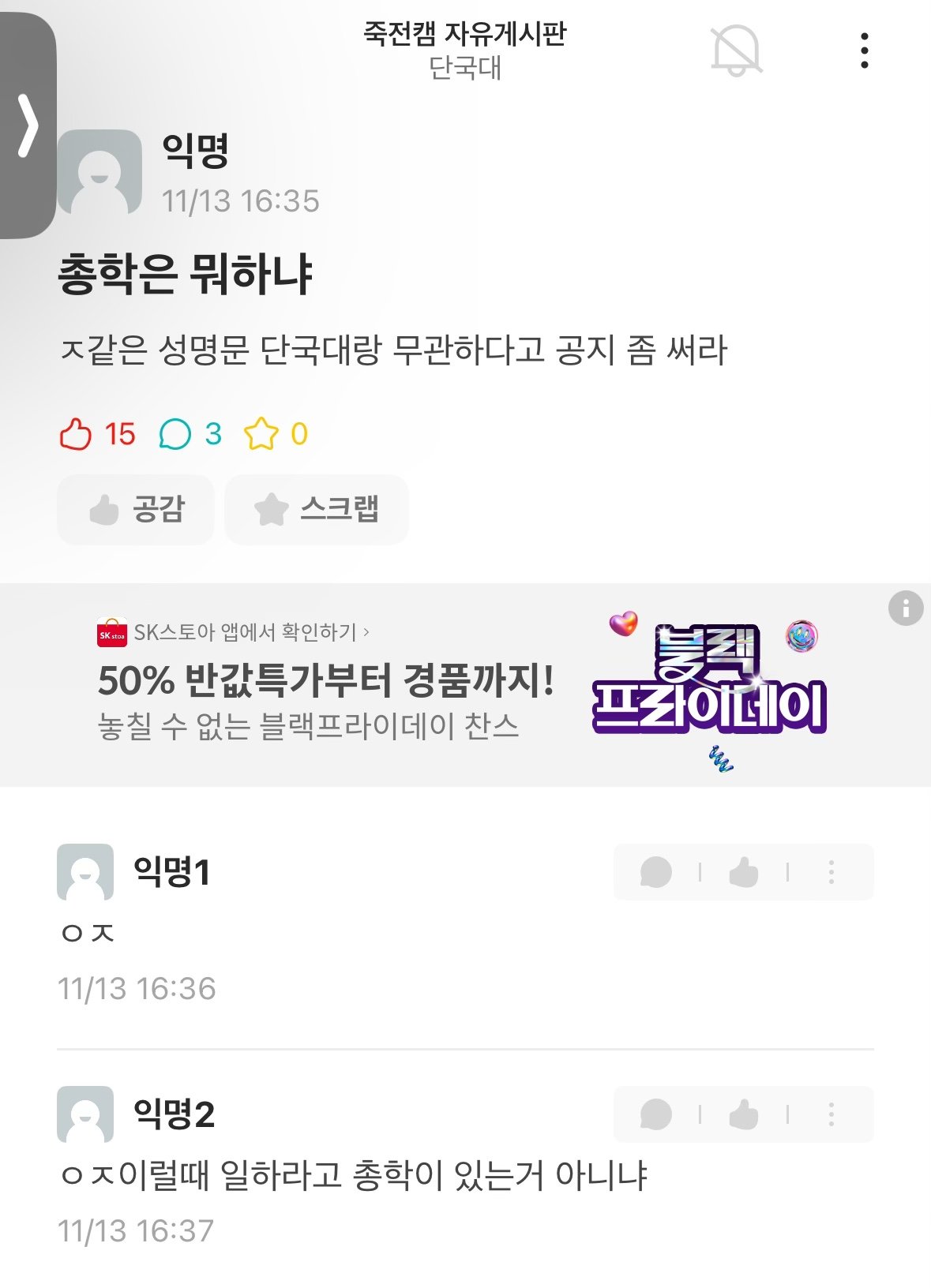 똥덕 지지 선언문 관련없다고 총학에 입장밝히라 요구 중