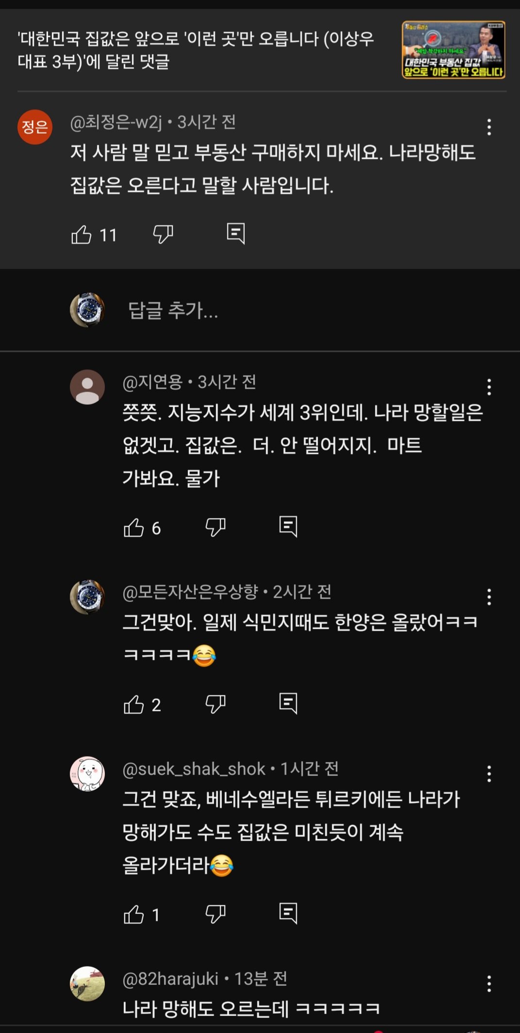 나라 망하면 ㅈ되는데 집을 왜삼?