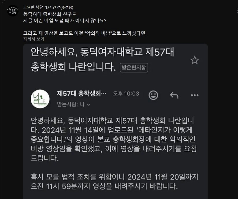 동덕여대 총학생회 근황(유튜버들 찾아가 법적조치 경고하고 다님)