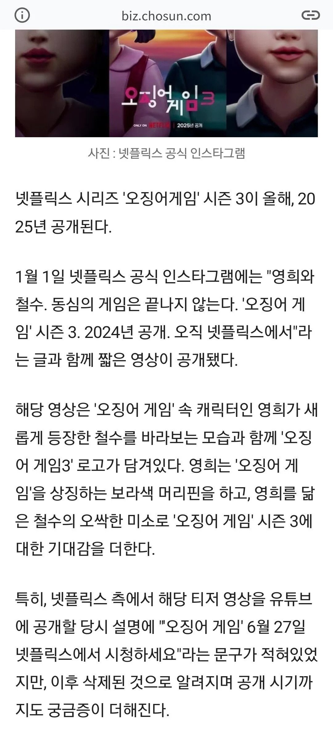 오징어게임3 티저&공개일 올라왔다가 빛삭 ㄷㄷㄷㄷ