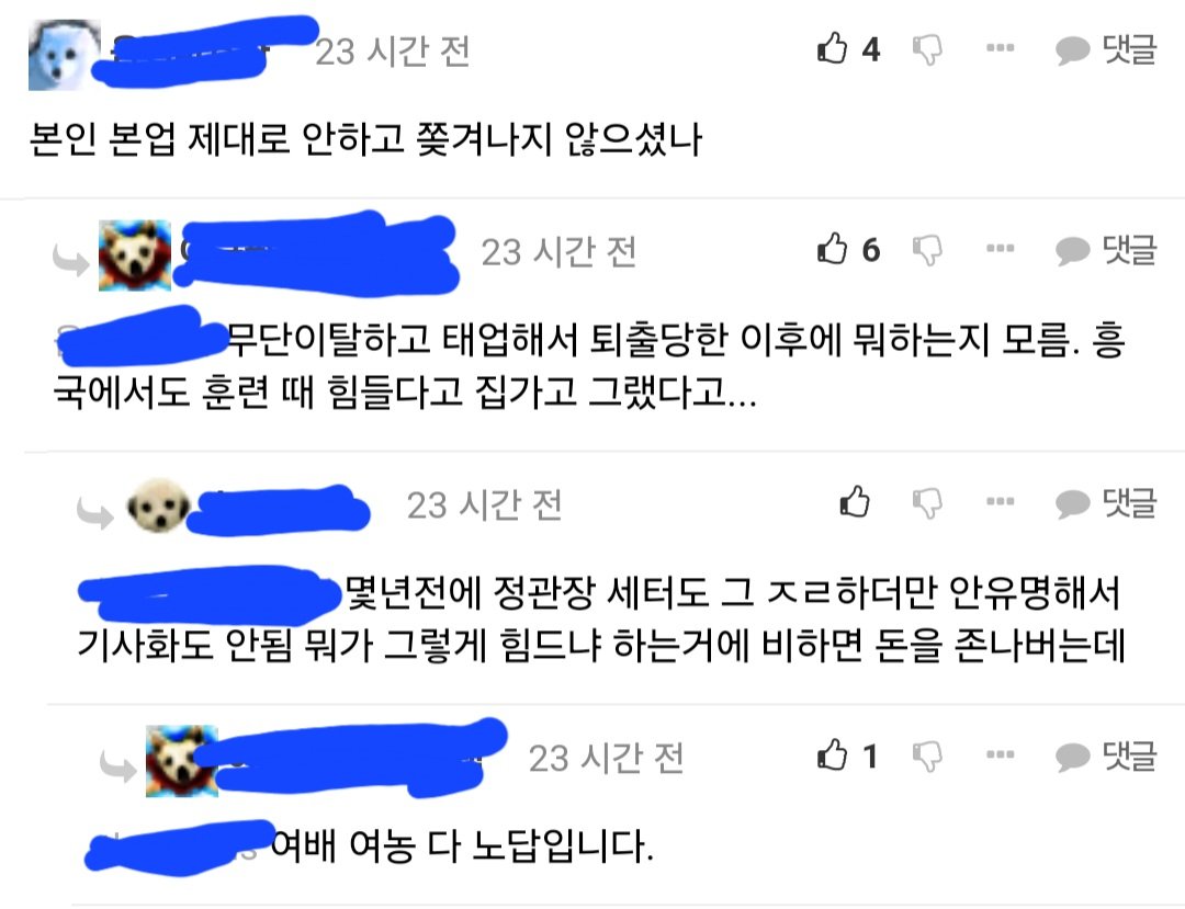 욕설이나 비방 목적의 댓글은