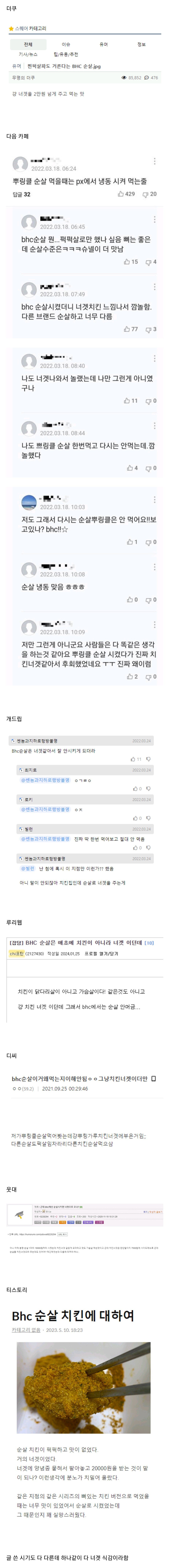 모든 커뮤니티에서 의견이 일치하는 BHC 순살치킨
