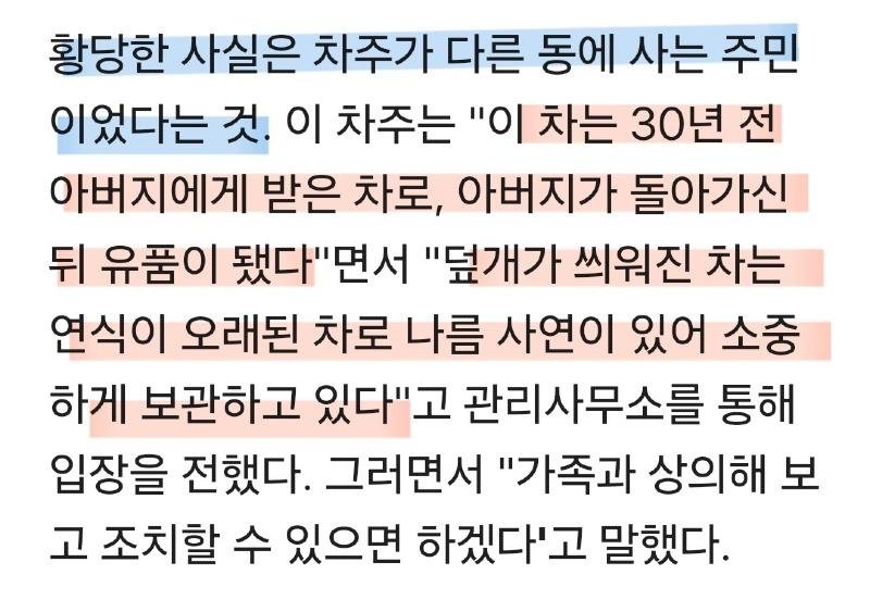 2. 차 덮게(호루) 씌운 차는 30년전 돌아가신 아버지가 몰던 차량으로 유품?이라는 것?