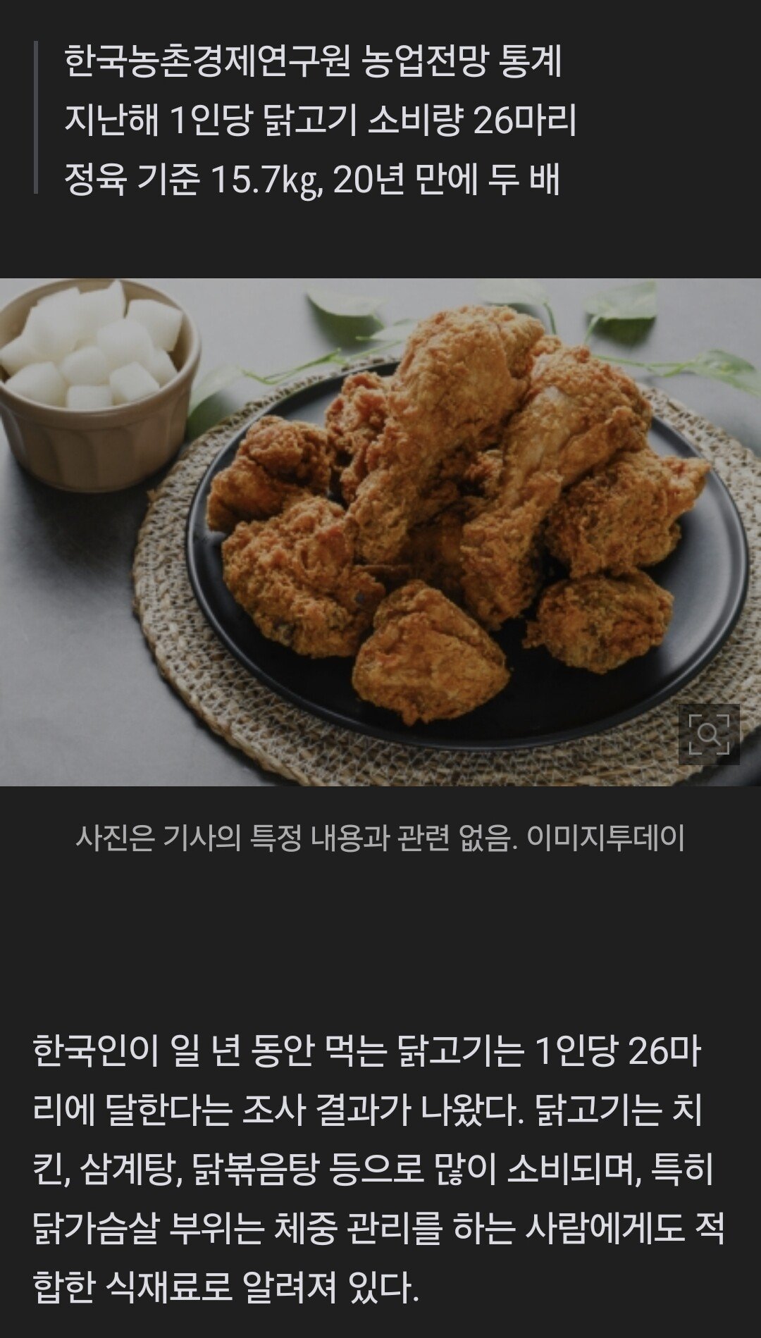 한국인, 한 달에 닭 ‘2마리 이상’ 먹는다