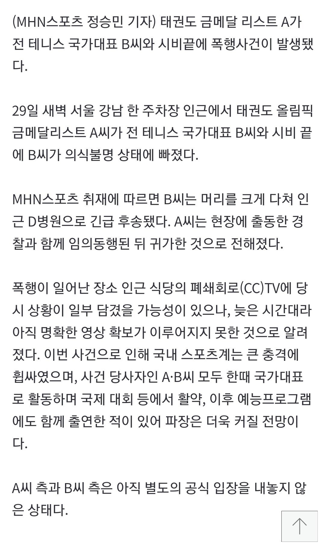 포텐 [단독] 태권도 금메달리스트, 전 테니스 국가대표 폭행…피해자 의식불명 상태