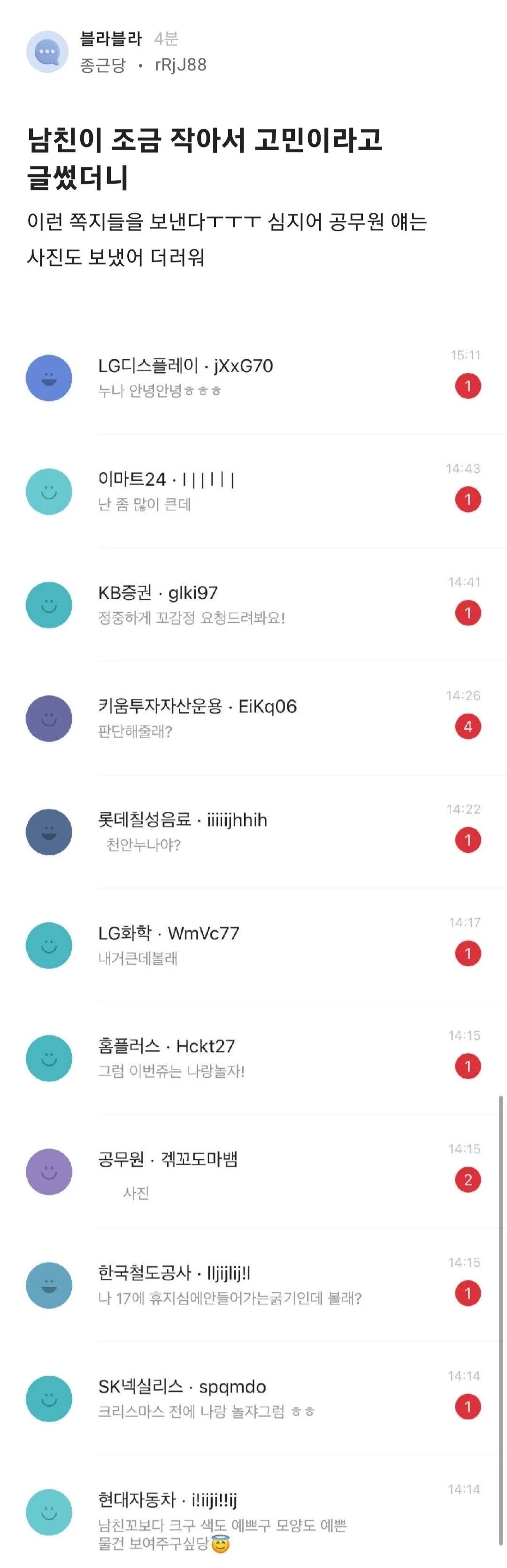 여자가 남친 ㄲㅊ작다고 글쓰면 벌어지는일