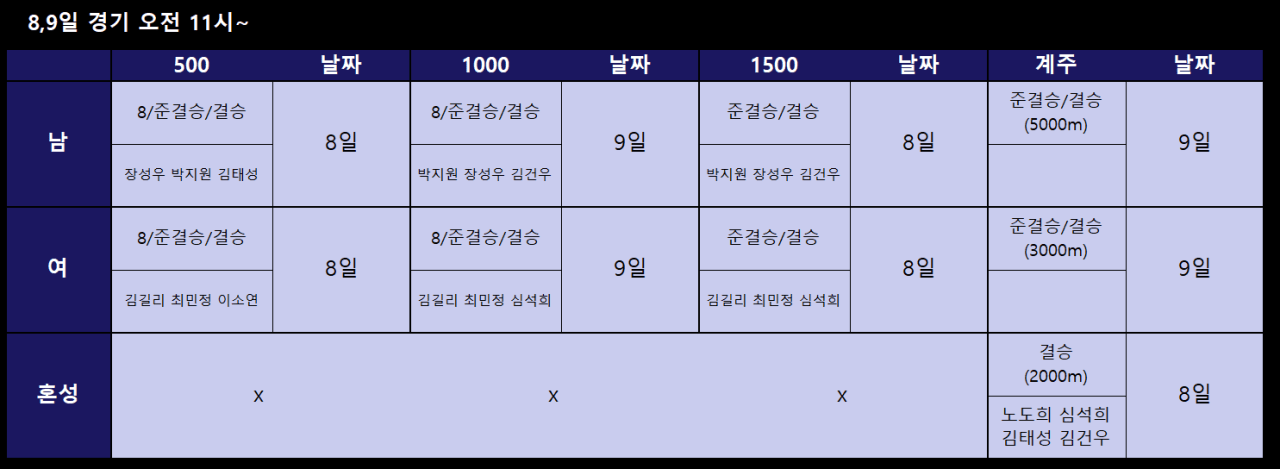 동계 아시안게임 쇼트트랙 결승전 일정 정리