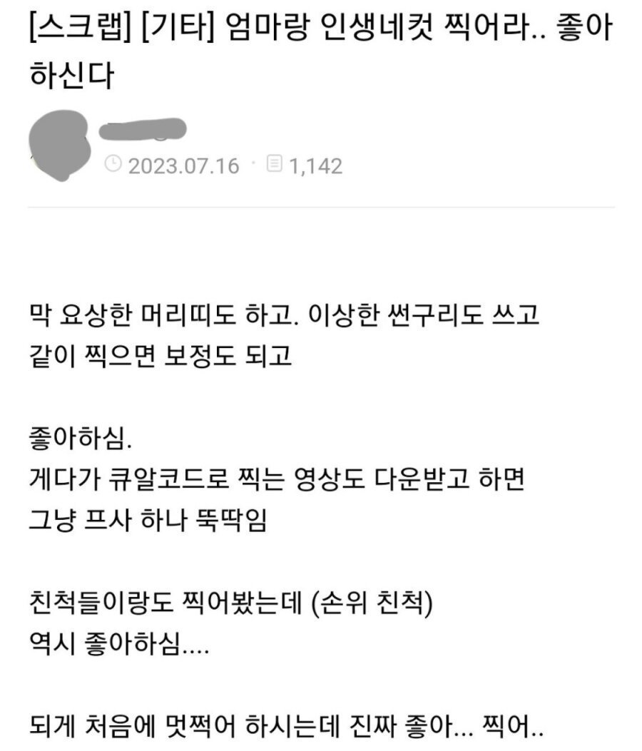 엄마랑 인생네컷 찍어라.. 좋아하신다