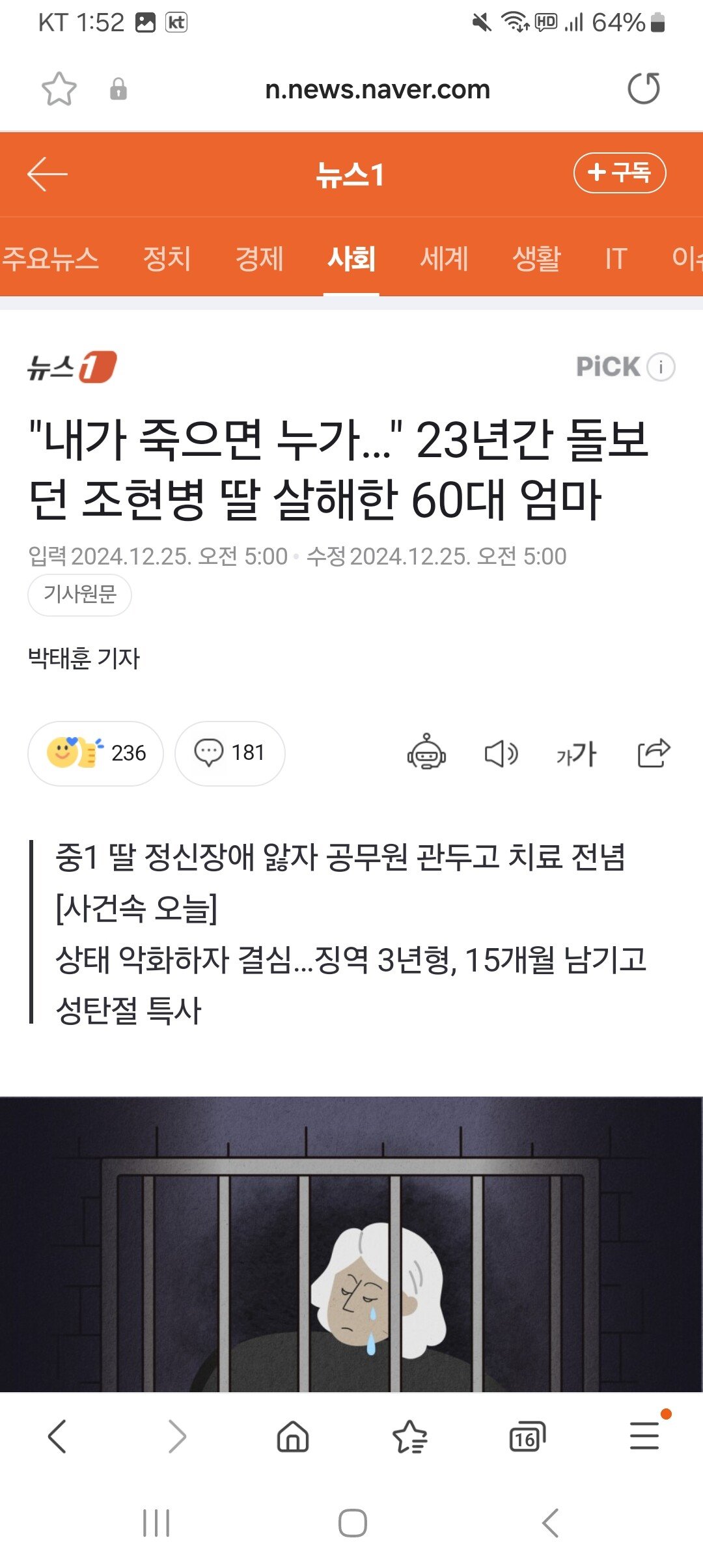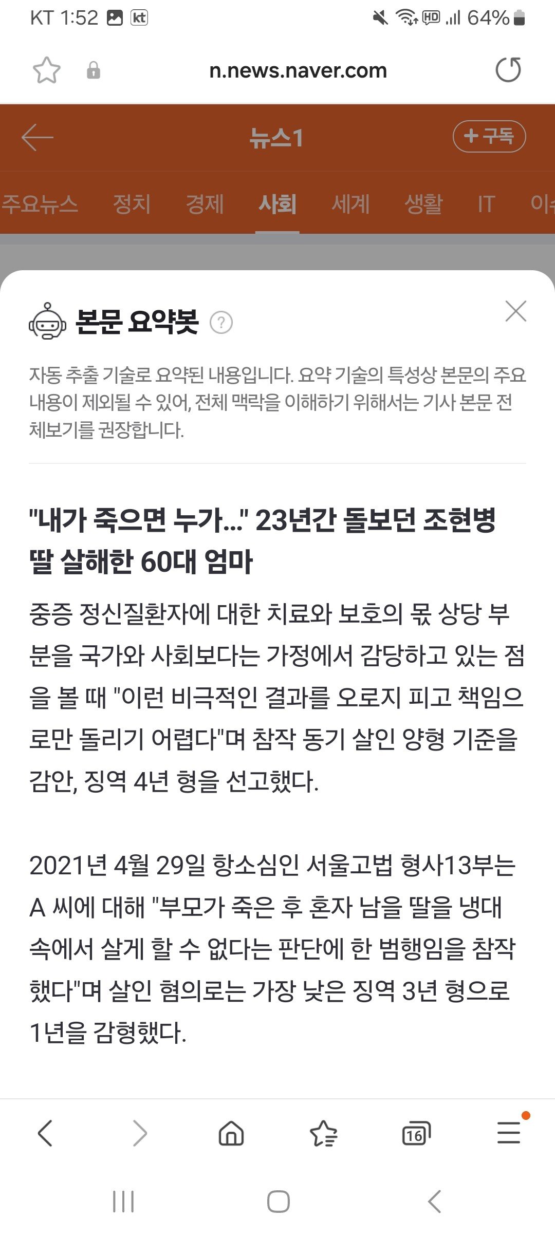 내가 죽으면 누가 23년간 돌보던 조현병 딸 살해한 60대 엄마