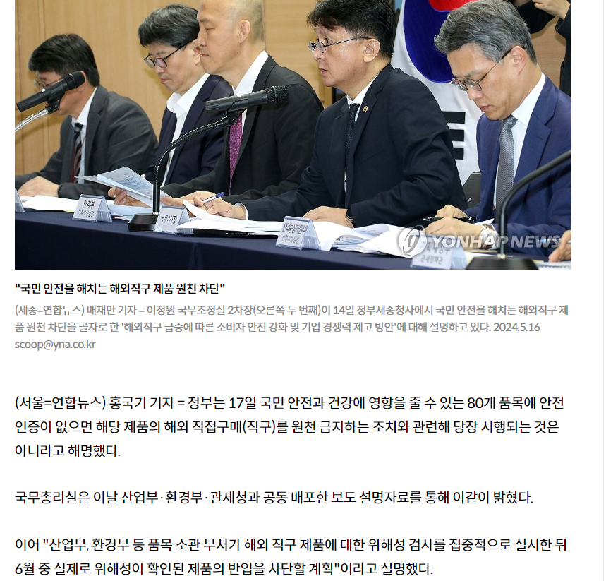 일단 해외직구제품 위해성검사 한 뒤에 개별적으로 차단할듯