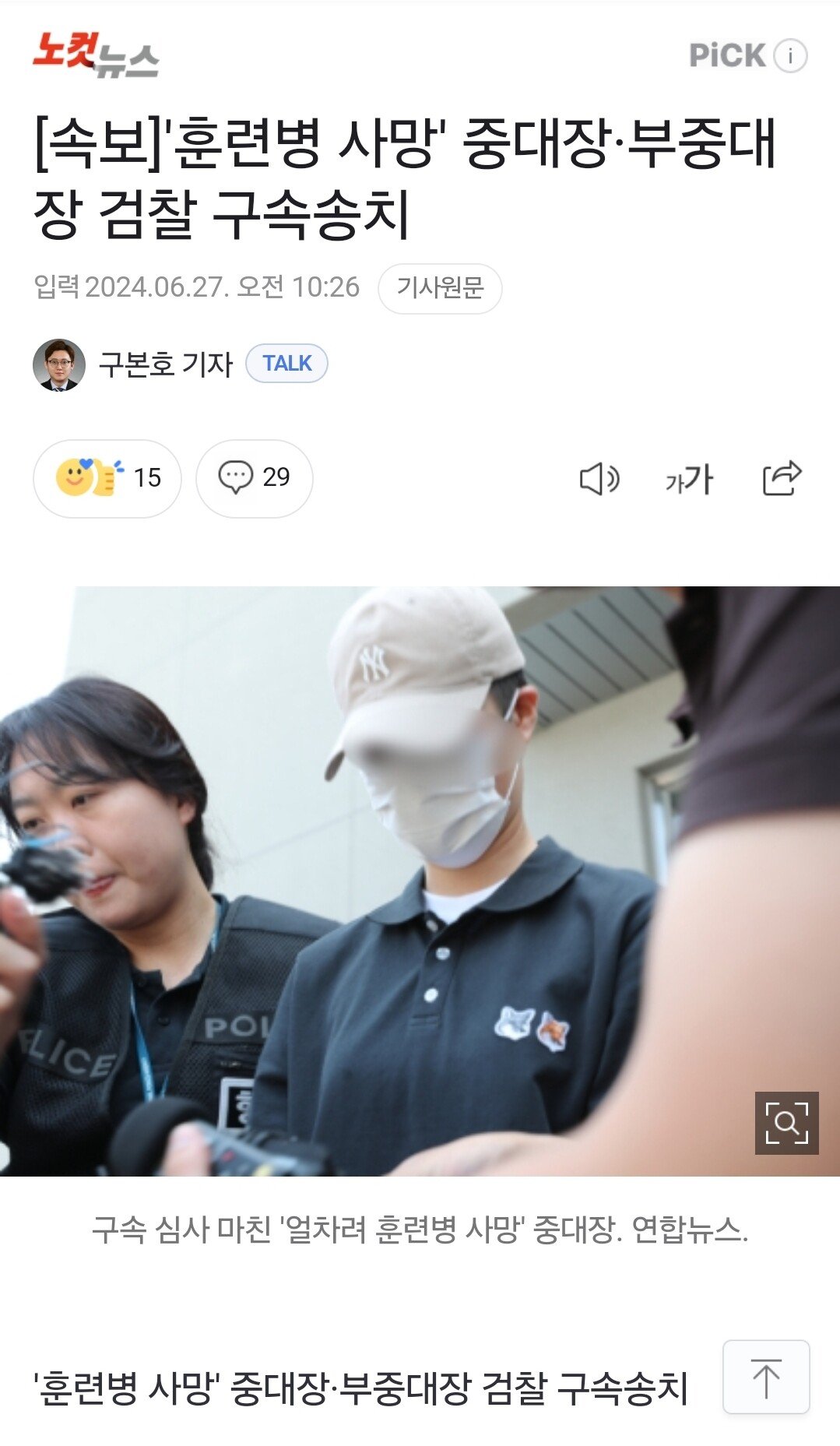 [속보]'훈련병 사망' 중대장·부중대장 검찰 구속송치