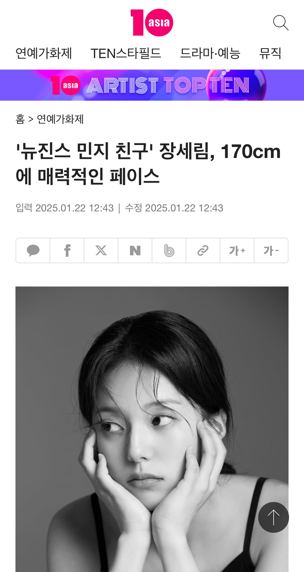 '뉴진스 민지 친구' 장세림, 170cm에 매력적인 페이스