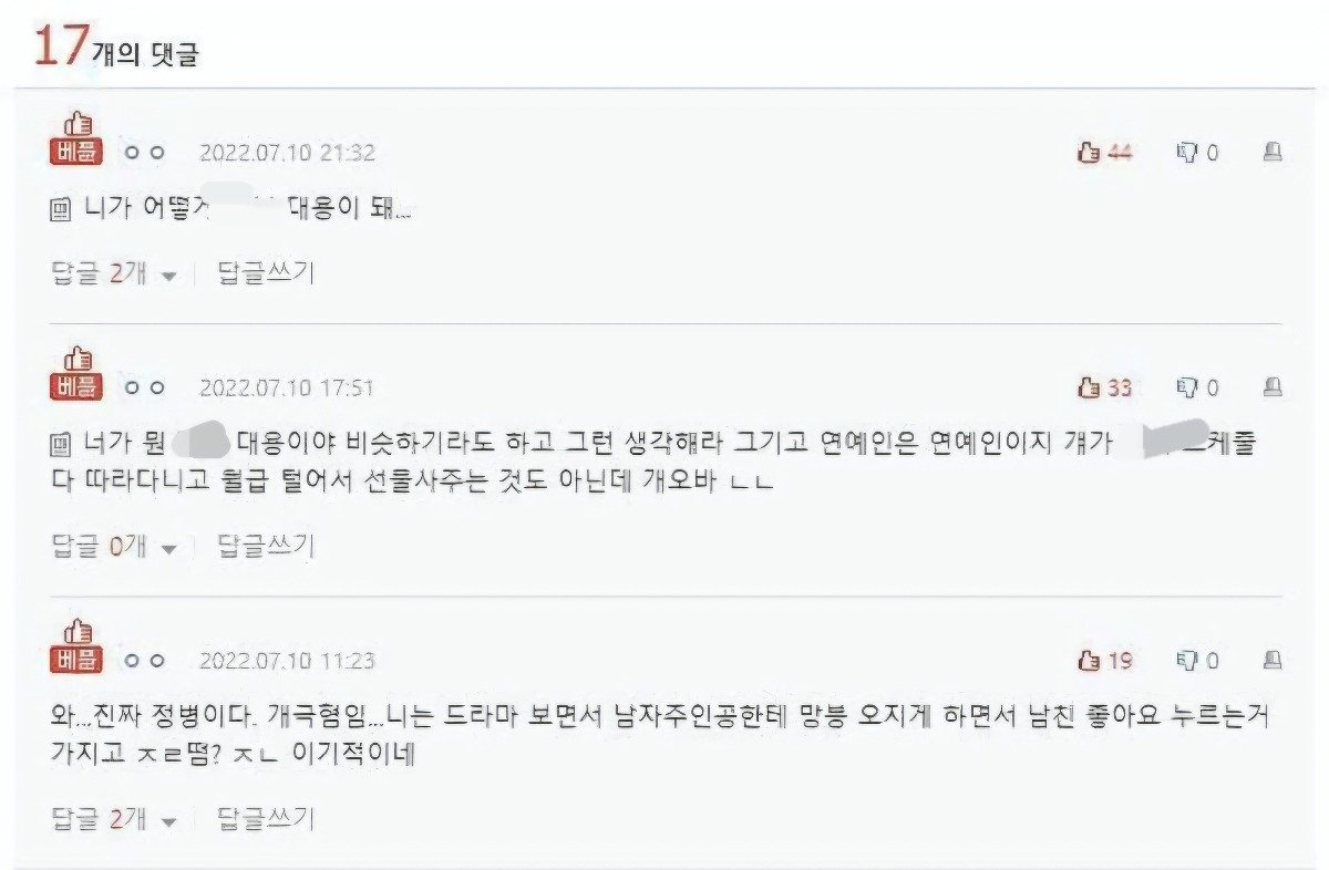 욕설이나 비방 목적의 댓글은