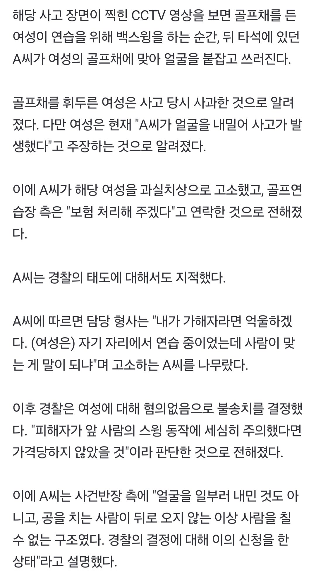 골프연습장서 사고…백스윙 골프채에 광대뼈 함몰