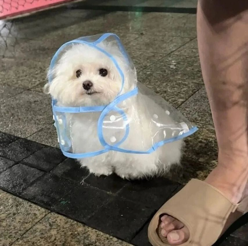 산책용 우의 입은 반려견