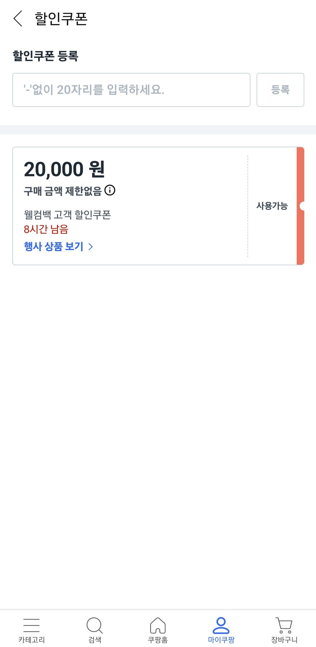 오예 쿠팡 웰컴백 쿠폰 대박떳다ㅎ