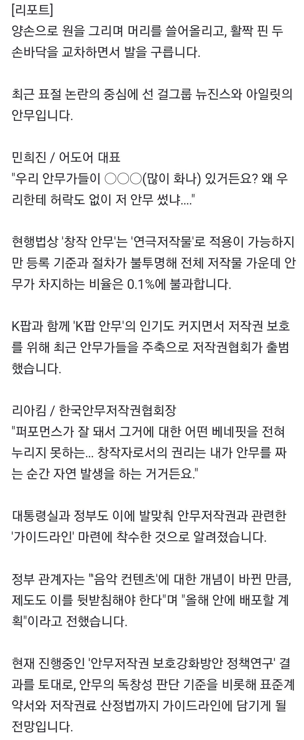 [단독] 정부, '안무저작권 지침' 만든다…'뉴진스 사태'로 연말까지 가이드라인 마련