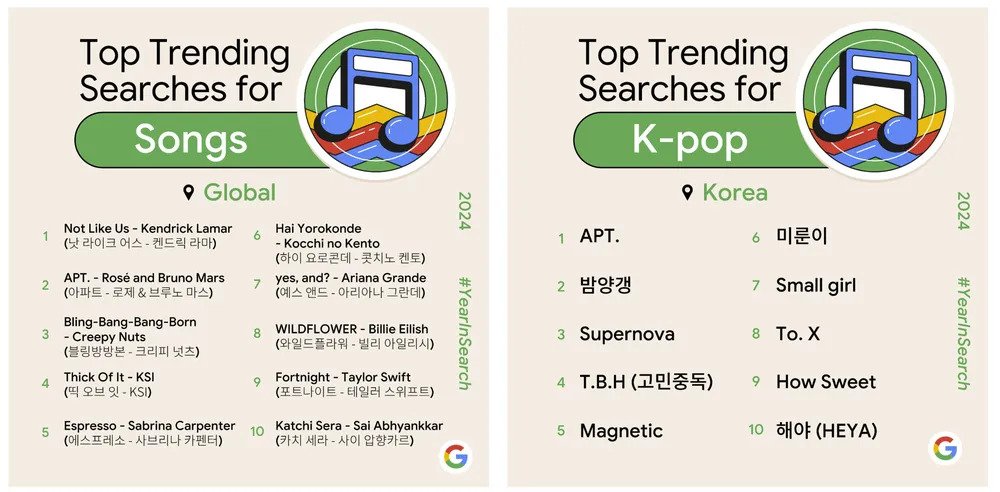 구글 올해의 노래 검색 순위 TOP10