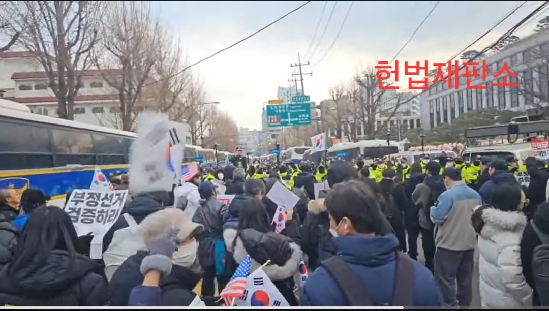 실시간)) 헌재 앞에서 경찰과 폭동견 대치 중