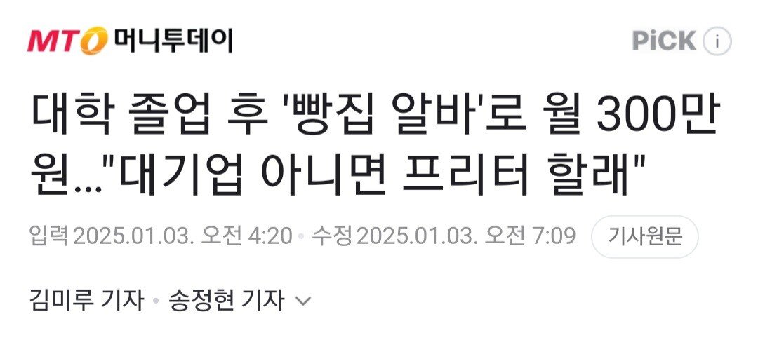 대학 졸업 후 '빵집 알바'로 월 300만원…"대기업 아니면 프리터 할래"