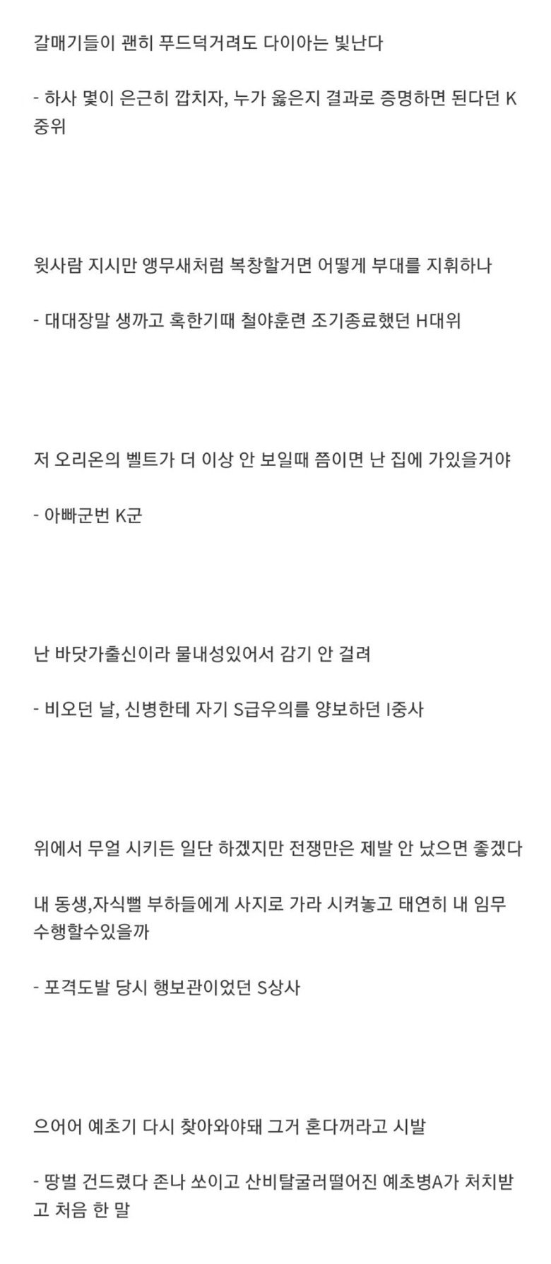 군대있을때 들었던 감성터지는 말들.. ㅎㄷㄷㄷ