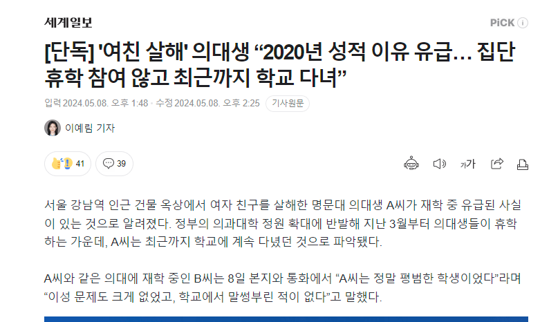 살인 의대생 집단 휴학 참여 안해 왕따 ㄷㄷ .jpg