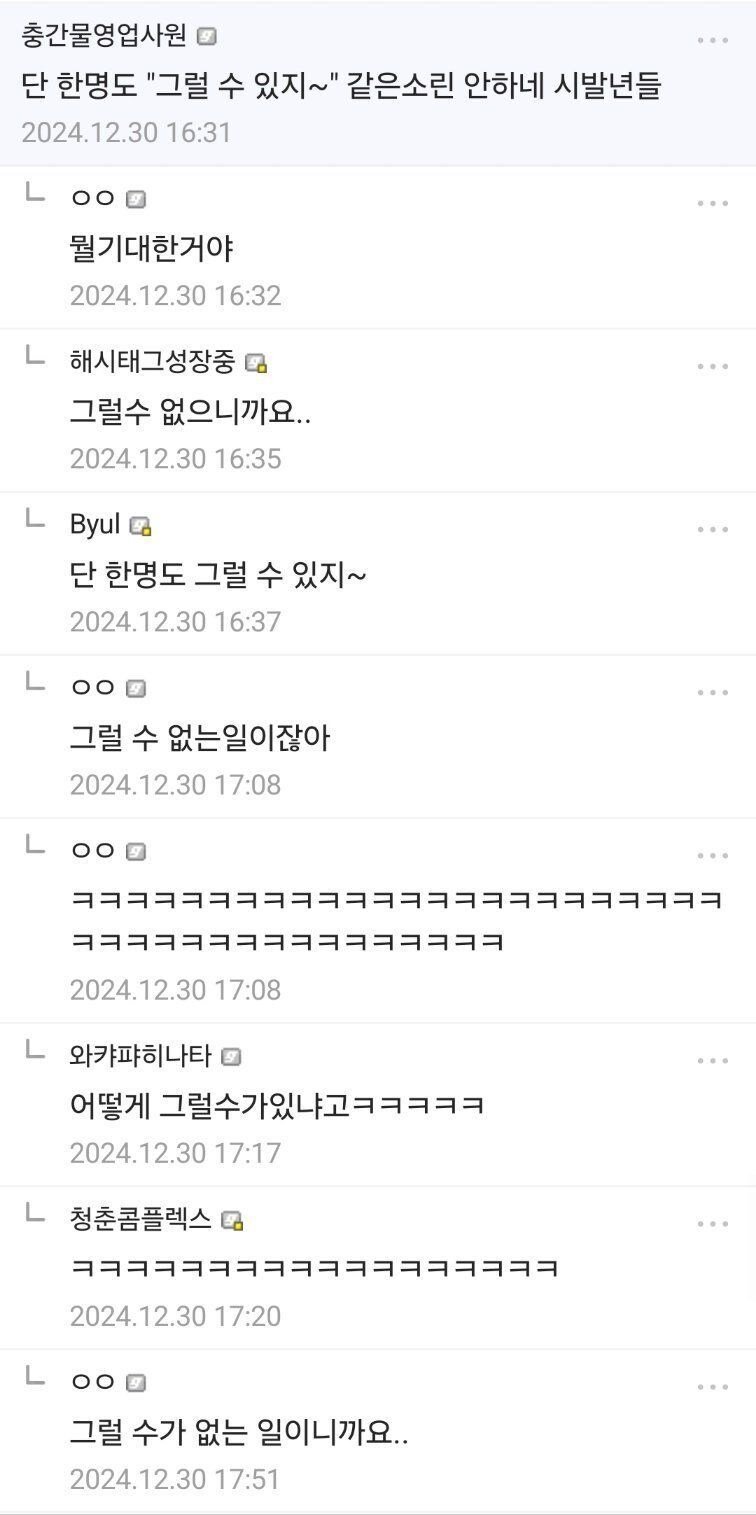 "단한명도 '그럴수있지' 같은 소리 안하네"