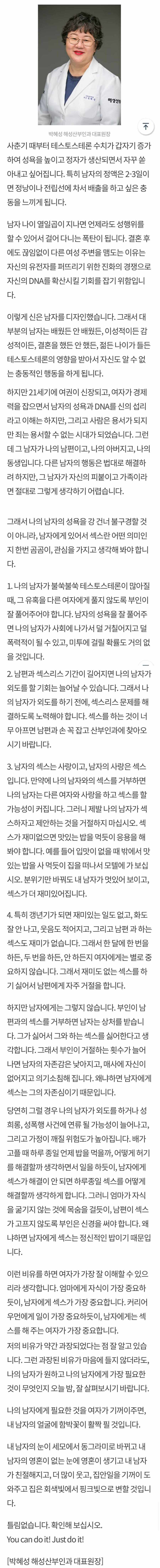 산부인과 대표원장님이 알려주는 남자다루는 법