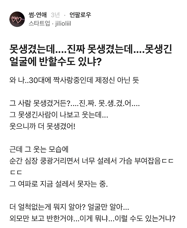 30대에 짝사랑 중이라는 제정신 아닌 사람